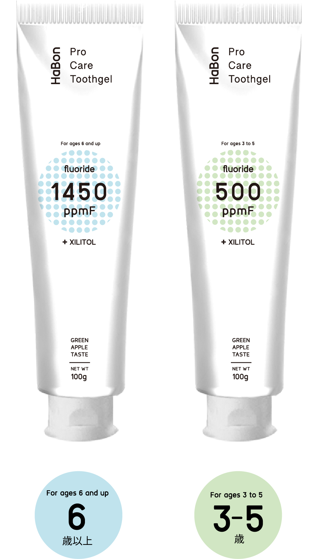 HaBonシリーズ は、泡立ちを抑えたジェルタイプで、丁寧に磨くことができます。歯みがきをした後は、ペットボトルのキャップ2杯分の水で、5秒間程度、ブクブクと1回すすいでください。